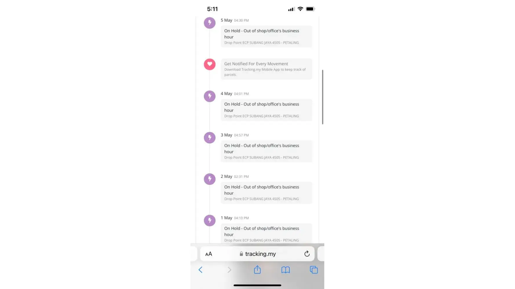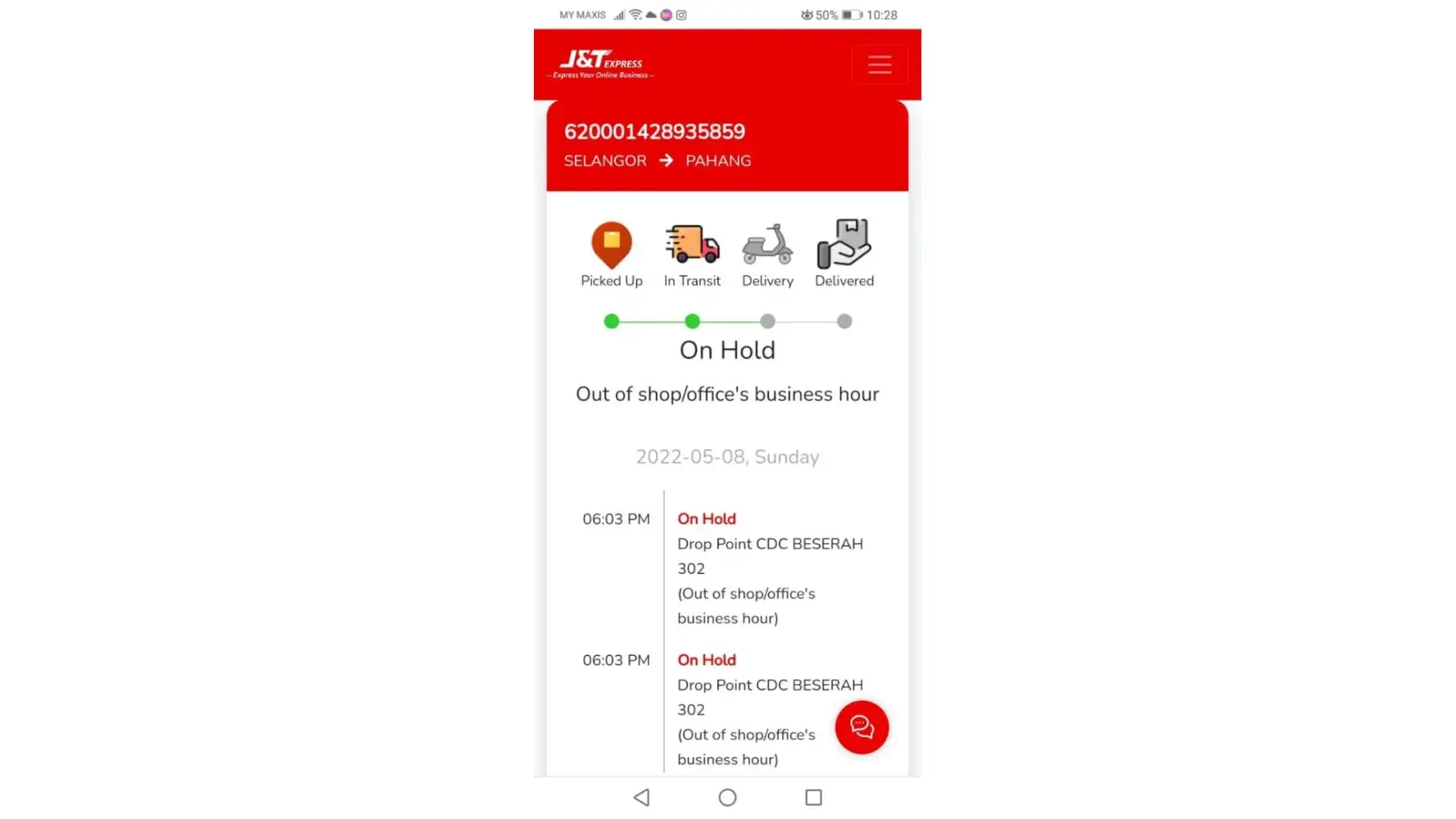 My parcel had been hold at your station Beserah 302 since 29/4/2022. Firstly, there is no one call nor follow up it immediately when i placed my 1st complainant on 5/5/2022. Your customer service promised will deliver to me within 3 days. Secondly, your company making fake update that my office/shop were out of business hours. My place open 24 hours per day, 7 days a week. We didnt close on Public Holiday as well. Your company didnt proceed the deliver and create an excuse say my place were closed. This statement is alike the delay due to my own fault!