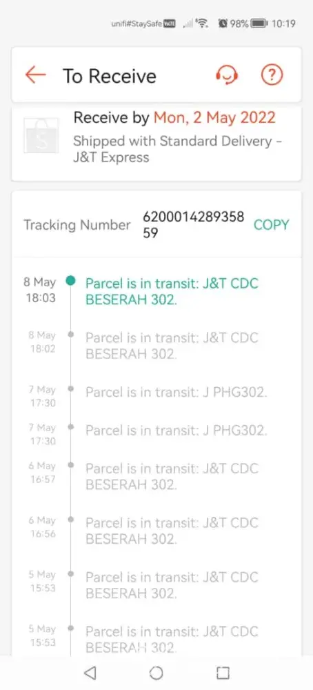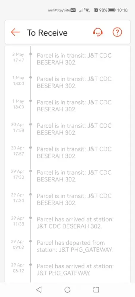 The delivery tracking stop update on 28 Apr, and till now no receive the parcel. Jnt express is so slow delivery.