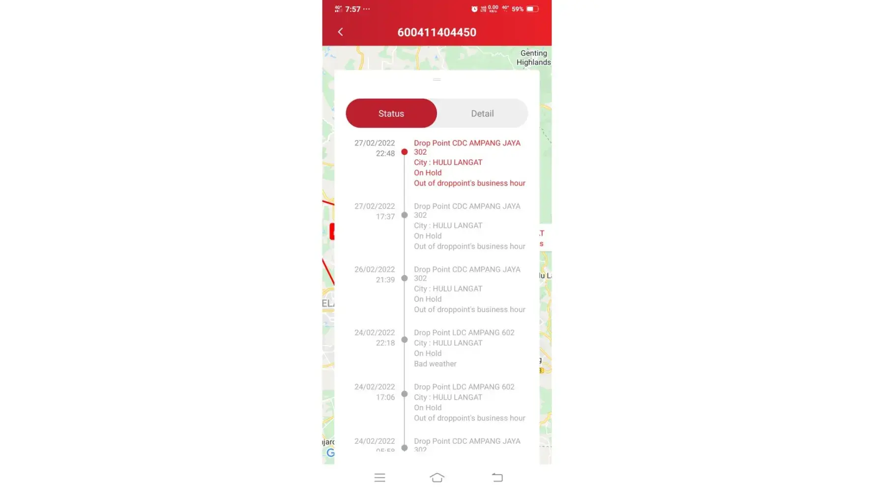 My Parcel onhold on ldc setapak 603 since 24/2/22 till 1/3/22 & unable to contact customer service hotline. C/note : [protected]