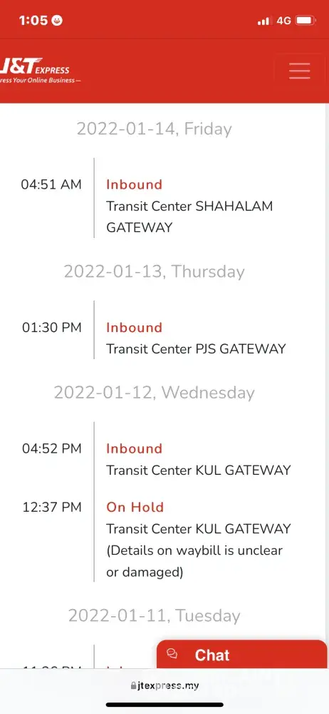 My parcel had been ship by the seller from Kuala Lumpur on 5 of January 2022. The parcel took almost a week or more to reach Perak. I had check that my parcel had been stuck in KUL_Gateway for 3 days which is on 6th to 8th of January. Then it had been transit to PRK_Getway and now it had been stuck there for 2 days. There written that my parcel is on hold when the service was available for the whole day. I would like to ask for briefly explanation why does J&T Express took so long to send a parcel which is only 2 hours journey and not 20 hours journey.