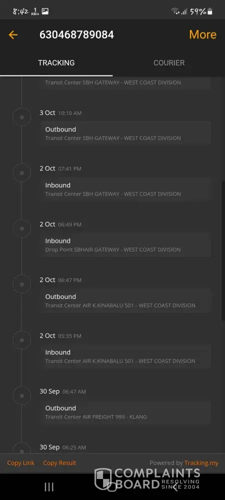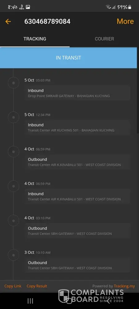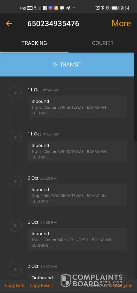 My parcel delivery is late. Although I know that it has arrived at J&T CDC Kuching 301. Try so many times to contact the office number but no one has ever pickup my phone calls. Got in touch with J&T Kota Sentosa, Kuching, Sarawak Malaysia and give me the name of the person incharge. But Gary was also unreliable because he didn't want to answer my calls since 8/10/2021.