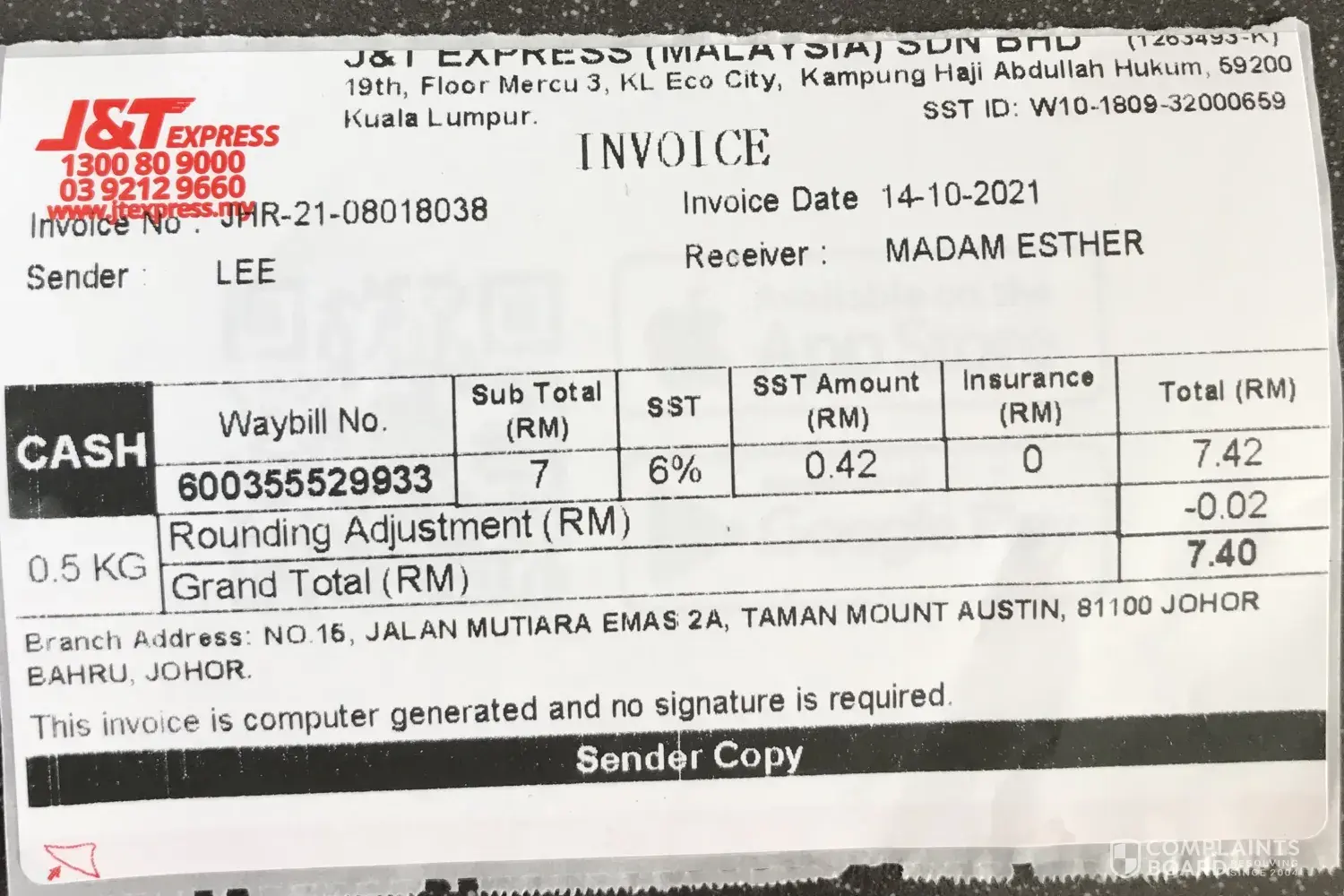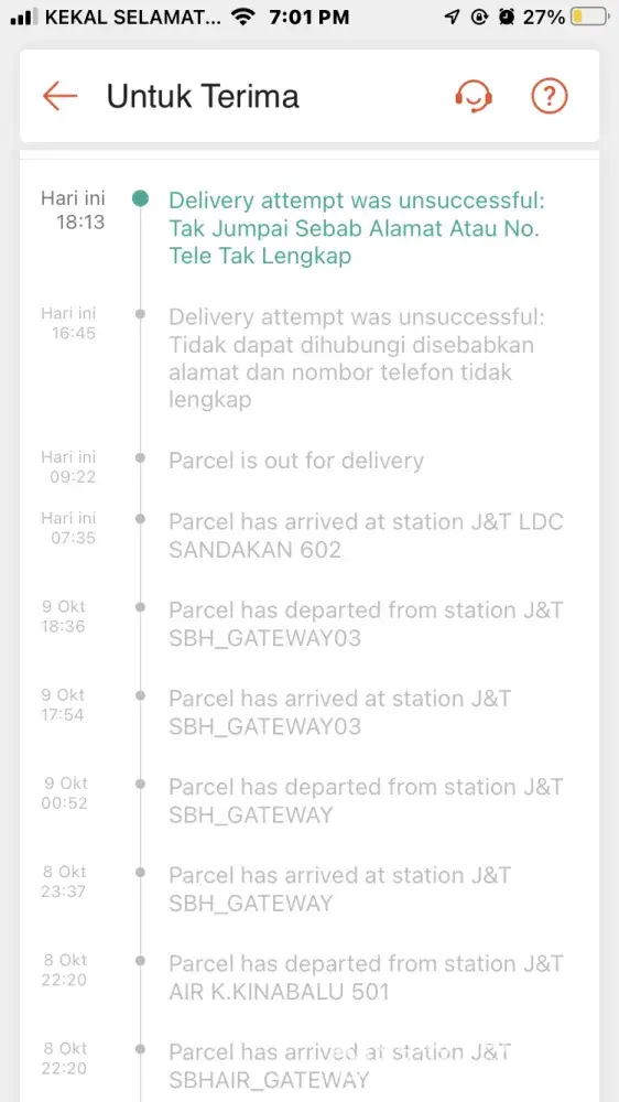 Barang saya hari ini out for delivery 10hb dalam sistem. Kes ini berlaku di jnt Cawangan Sandakan. Barang telah dipos pada 1hb. Saya mendapat panggilan dari penghtr jnt bhwanya dia telah dekat untuk hantar barang saya dan meminta saya ambik dibawah. Saya tinggal rumah apartment dan ada lift. Penghantar tersebut tidak menghantar barang saya sampai depan rumah. Melahan membuat aduan alamat dan no tel tidak dapat dihubungi. Sedangkan alamat sy tu telah banyak kali saya guna membuat pembelian dari shopee. Tidak pernah mempunyai masalah kena turun bawah ambik percal. Perkerja seperti ini kalau tidak mahu hantar barang sampai rumah sila lah berhenti dan kerja jadi bos la senang. Sudah menyusahkan orang dan servis yang sangat lembab dari jnt yang mengambil masa agak lama nak sampai. Tu pun belum saya, sebab saya tidak terima barang saya lg. mohon tindakan segara.
