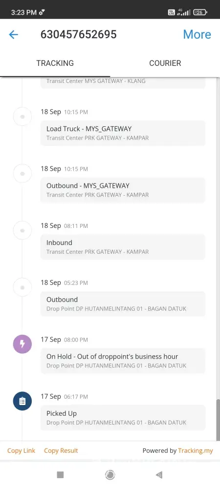 Suddenly stop scanning for 2 days, call cs said the item was at penang already but they lack of man power.[censored].why most of my previous parcel i received so fast..service sucks day by day..