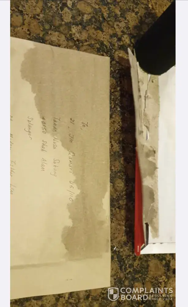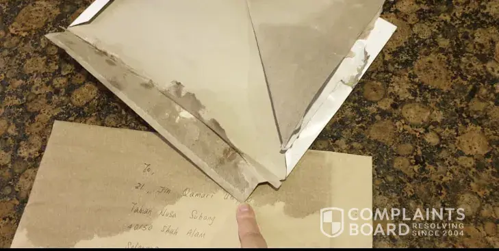 Delivered on Friday 15/10/21, left it in letter box without informing the receiver, until receiver noticed it was wet and damaged in letter box.