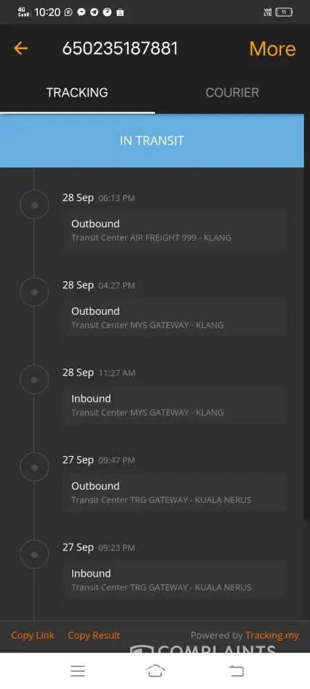 28hb last update lepas tu tak ada lagi. Boleh recheck balik di mana parcel saya. Sbb sepatutnya paling lewat hari ini. Saya nak gunakan bahan kerja saya sebelum 4hb. Let me know..
