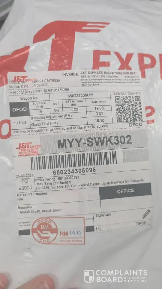 Pada 26.09.2021 saya ada buat penghantaran sebuah beg berwarna hitam melalui perkhidmatan j&t taman damansara aliff johor