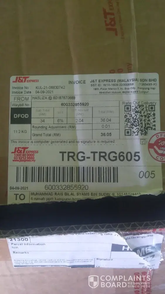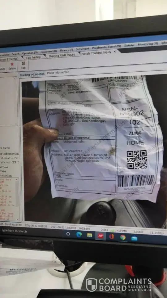The parcel is worth RM800, and J&T Negeri Sembilan hasn't been helping in moving the case forward, so we hope that MCMC will help us with this case. Thank you.