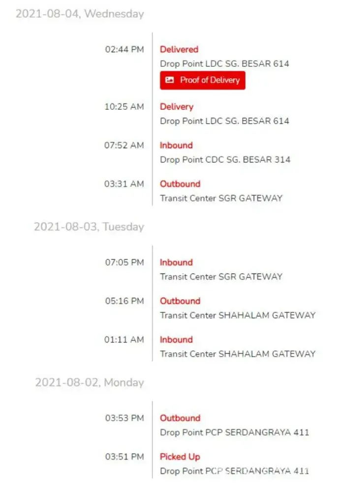 We wanted to proof that the buyer received the concrete mixer (Item #1) instead, so we asked J&T for the proof of delivery.
