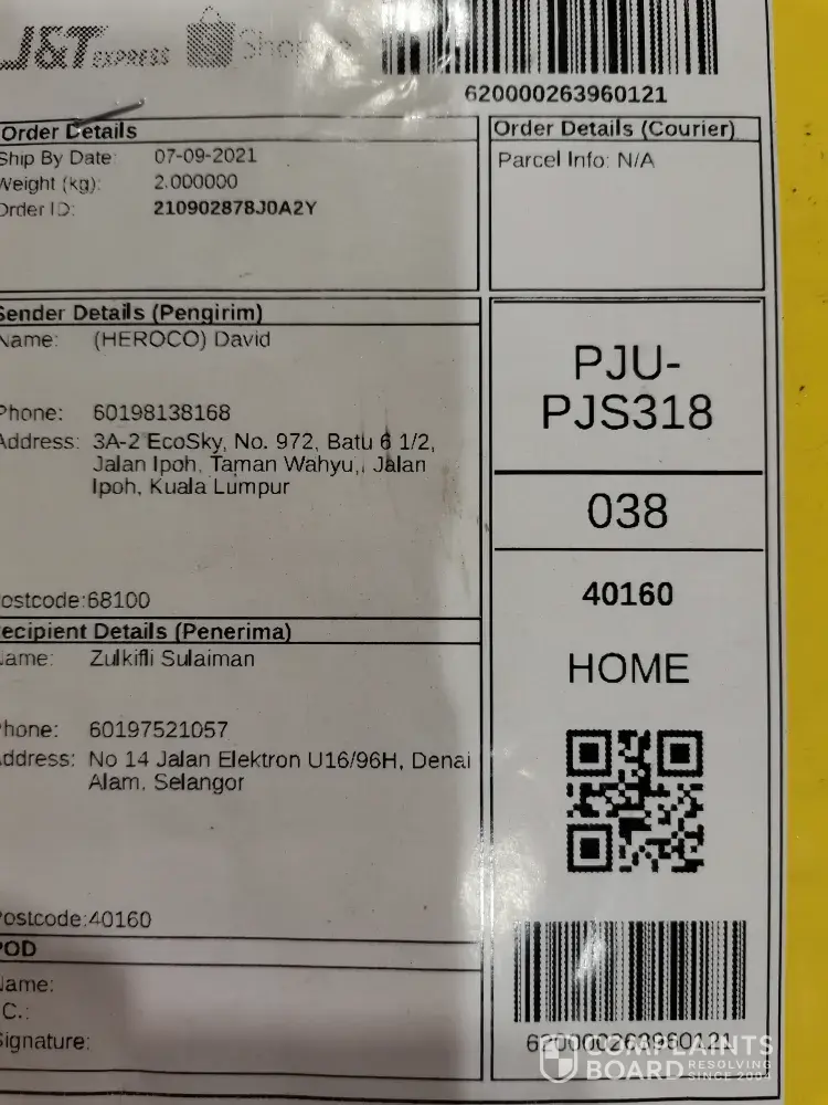 My parcel was on hold in J&T JURU 602 since 29/8/21 till now