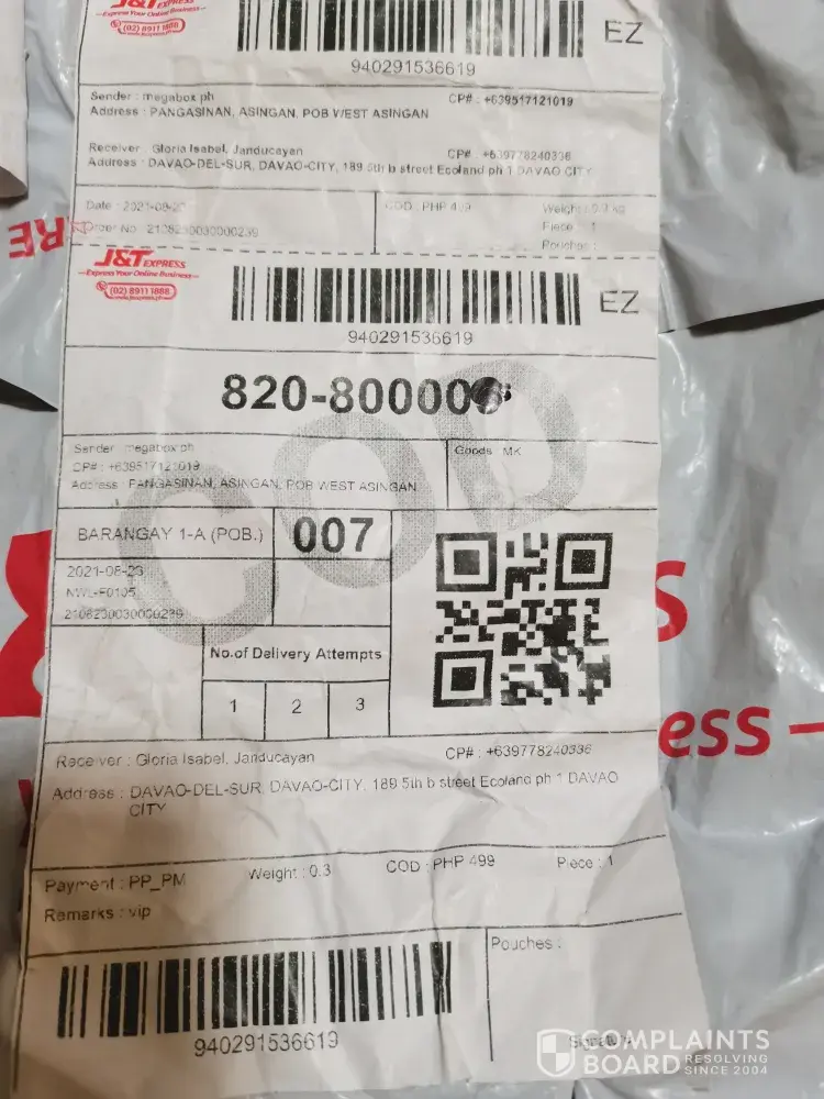 The rider did not inform about the note. If he informed properly the note address to him, I could have return the parcel because I was charge despite winning the raffle. Hence a scam. The parcel came from megaboxph, address in pangasinan.