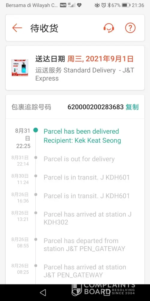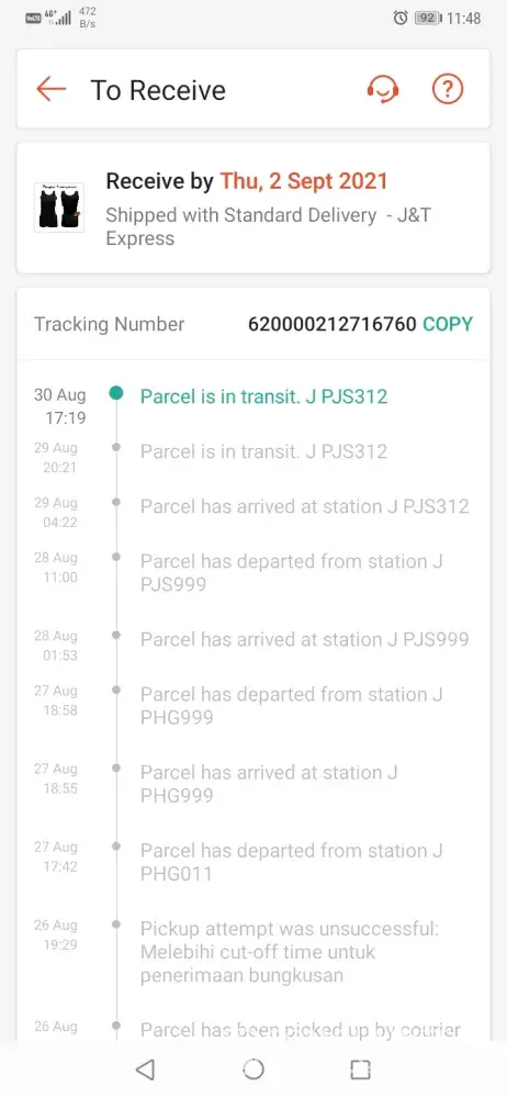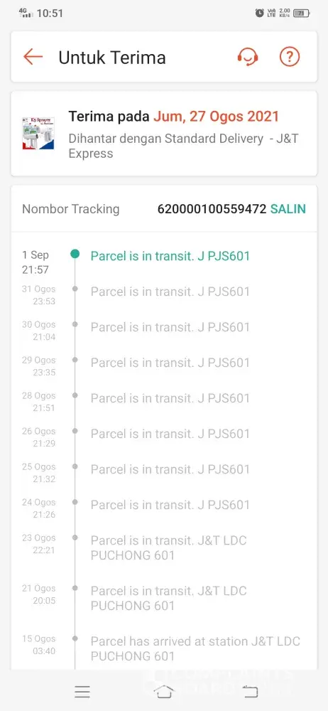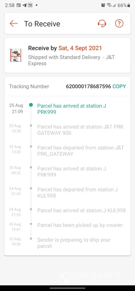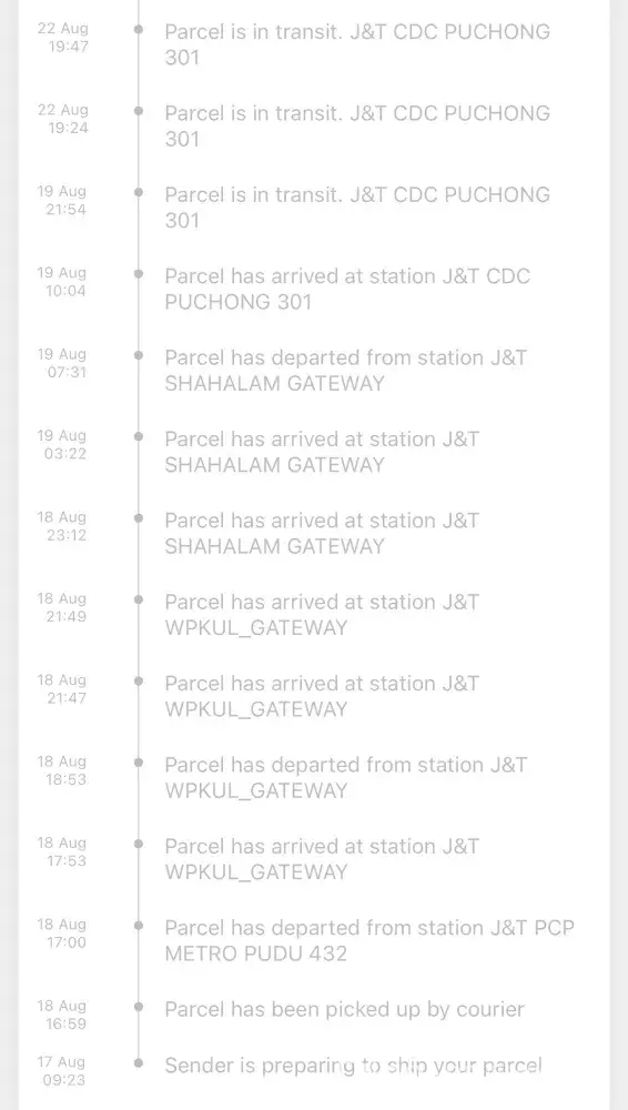 Above is my tracking ID for an order made via Shopee. The order supposed to be delivered on the 23/08/2021, however till today 02/09/2021 im yet to receive my parcel. The order status is stuck In CDC puchong, its being checked-in again and again after hours every 1-2 days gap.I have contacted J&T customer service 6 times to check if anything's wrong and i was informed that they will inform the CDC puchong station, will send email and will inform the person in-charge. But no update on the delivery, again when i call, they informed the same thing but also no any update on the previous reports made which was informed as the agents thru the call. You may refer to the attachment that when was the parcel arrived at the station and its just keep on checking in. Truly understand the current situation and parcel will be delayed for delivery. But not this many days, especially after the call to J&T cust service on 24th, i was informed it will only be delayed 1-2 days. Im afraid something is wrong with the parcel/missing, hence its been delayed, keep on checking-in same station and no proper update. The latest when i call J&T cust service, they just simply asked me to cancel the order instead of delivering it on time. First of all the order was made to shopee, why would i need to cancel the order with shopee if courier failed to deliver? Kindly check and update as soonest, looking forward for the delivery by today if the parcel is fine.