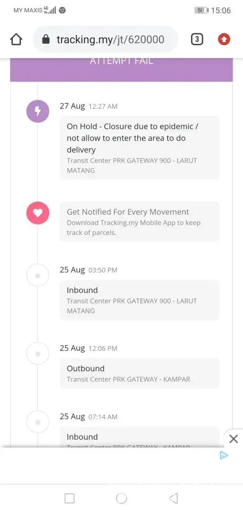 Dah lama peram barang kat bayan lepas ckp brg xleh hantar sebab pkpd.rumah kat sg ara, xde pun pkpd, bayan lepas pun xde pkpd buat masa skrg, tp jnt bg sbb xhantar brg status pkpd xleh masuk kawasan. Logik ke? Ad barang lain hantar, ad brg xhantar, xke pelik?