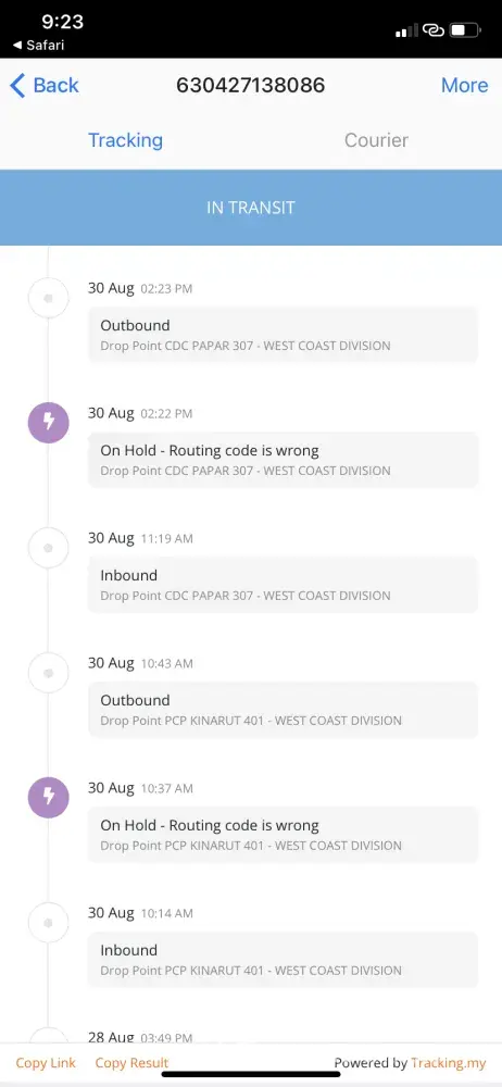 My parcel has been "on hold" and "in transit" since 26/8/2021. AND NOW IS ALD 30/8, it is supposed to arrive in 2 - 3 days (28/8)