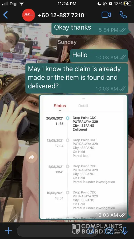 On 13th august my customer Parcel already stated as lost and can claim, but already passed 16days still no refund. I'm shock to see that the item suddenly stated as delivered but the recipient have not receive any parcel. I just need j&t to refund back the money as soon as possible. Please resolve this problem and don't ignore because I've texted and ask politely but no reply.