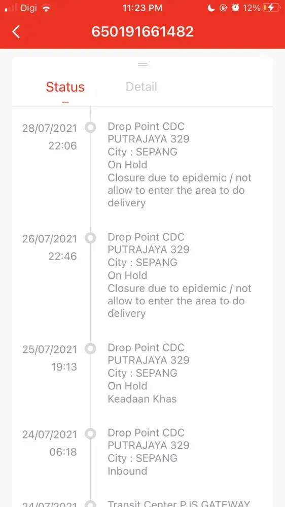 Mohon buat penghantaran semula untuk parcel saya yg on hold disebabkan kawasan penghantaran tidak dibenarkan kononnya. Sedangkan, kurier lain semua hantar okay je and kawasan rumah saya tidak di kenakan apa apa pkpd or what. Kalau takbole hantar, bagitahu dulu bfore tuka status tu. I need that item asap. Ada 2 parcel. Here my track number. Pls!