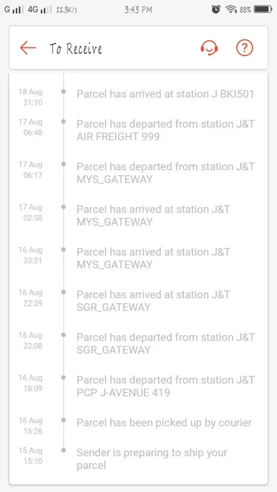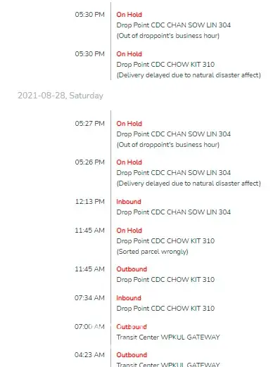 Hey j&t, my parcel was sent from jb to ipoh at 17/8/2021 and until today 28/8/2021 I did not recieved my parcel. My parcel are now at prk gateway 900 and has been scaned for outbound at 25/8/2021 but untill today still stuck there. Everyday I called your customer service hotline and their reason always the same which is there's been a problem at the gateway and klebang hub. What took you so long?! Taiping - ipoh took more than 3 days? Please fix your service and this will be my last time to use your service. Totally your service sucks. Before this I really love to use your service but this time you have exceed my limits. I already told to your customer service hotline that my parcel is urgent and seems like they didn't bother about it! I need my parcel to be arrived quick!