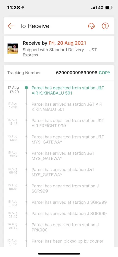 I demand for push delivery of my parcel. Its has been stuck since 17 August 2021 at J&T Air K.KINABALU 501