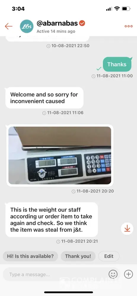 Complaint: Obvious trickery in the order from the beginning. J&T Express did not verify if item is the one ordered.