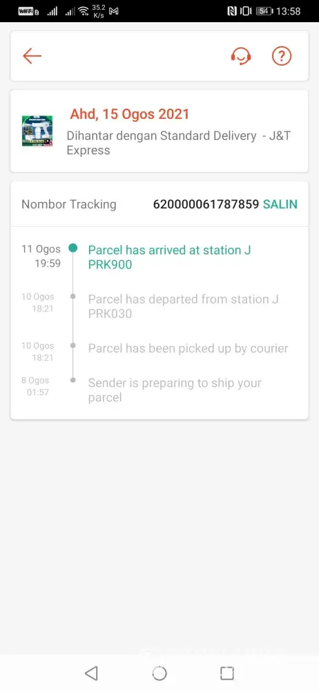 I am very disappointed with J&T Express now. My brother sent parcel number [protected] from Penang on 10/8/2021. However, until now 16/8/2021, the status of the package is still stuck at J&T SGR 601 Bandar Teknologi Kajang. This item is very important for me to receive immediately. It is hoped that J&T can improve the quality of service so that users remain confident to use your services.