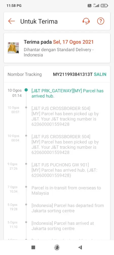 J&T Express Barangan yang di pos masih sangkut atau terperam d jnt hq
