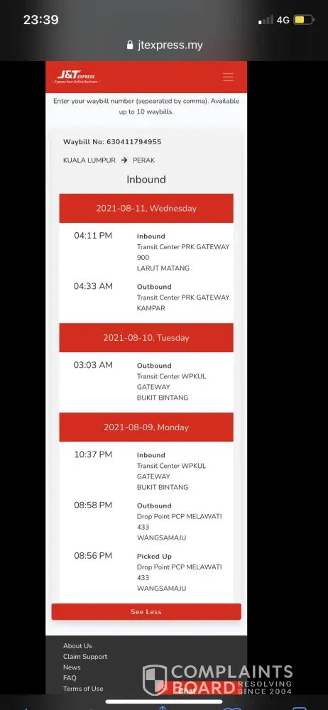 Me too... My parcel "on hold" since 7-April at J&T Pekan Meru. I called all the phone numbers, none answered. I sent email, it says "Quota exceed the hard limit".