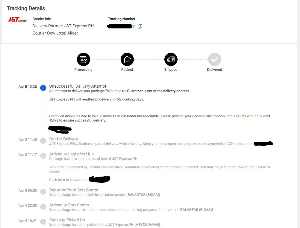 I check order delivery status this morning and found last status is last night failed to deliver, which is odd when I was at home and not hear any delivery nor phone call on delivery. This afternoon try to call the number [protected] that list on the apps and website, the number is not in service. In service industry, important to have correct contact number updated. I called nearest Farlim center few times, not reachable. Afternoon I saw a J&T truck in neighborhood, but the guy said no delivery for me. Please improve to update correct status, contact number and reachable. Lastly, I still wait for my delivery. The vendor Lotus using this company for delivery, not something I can choose.