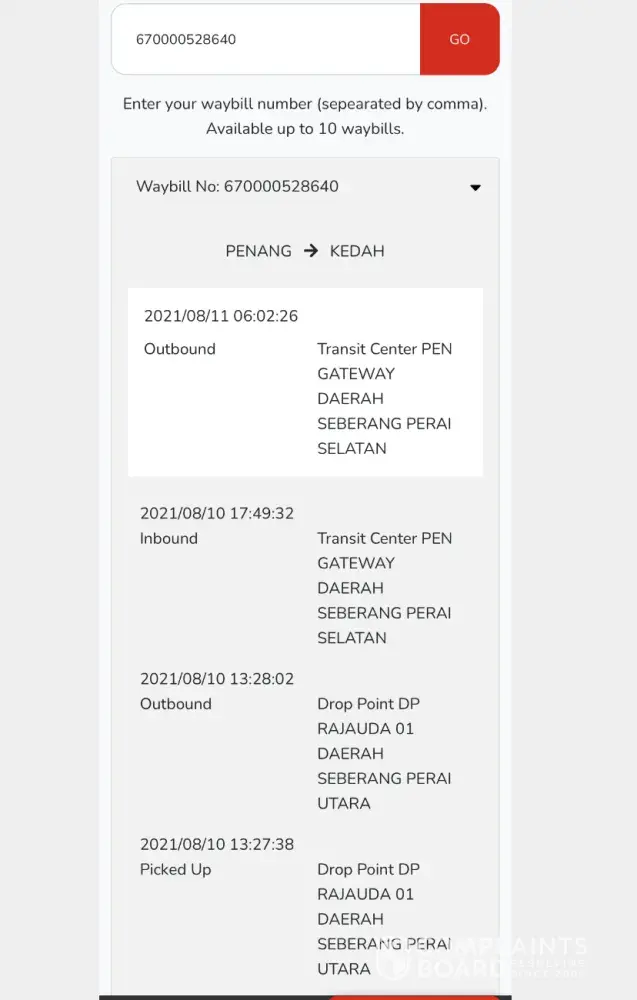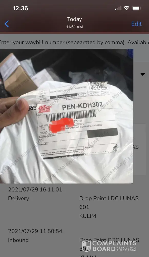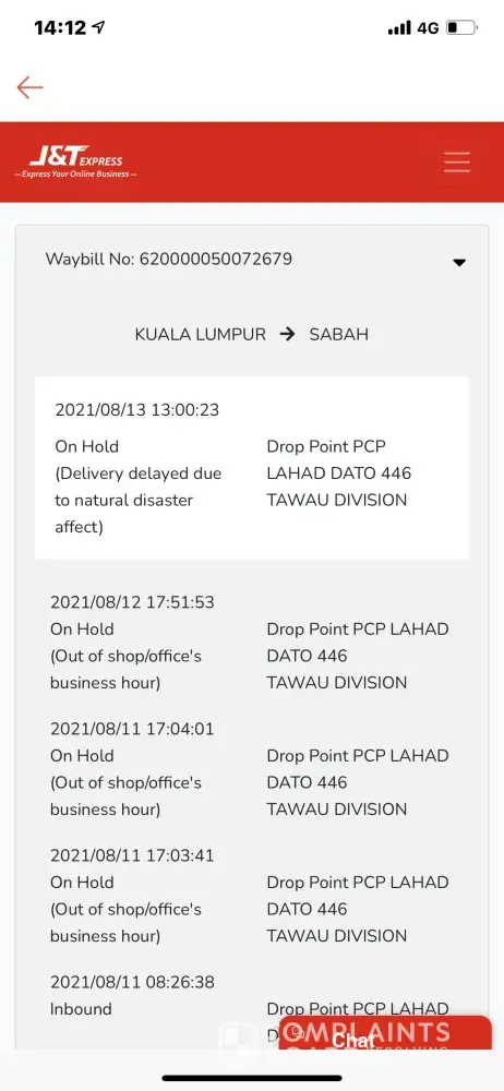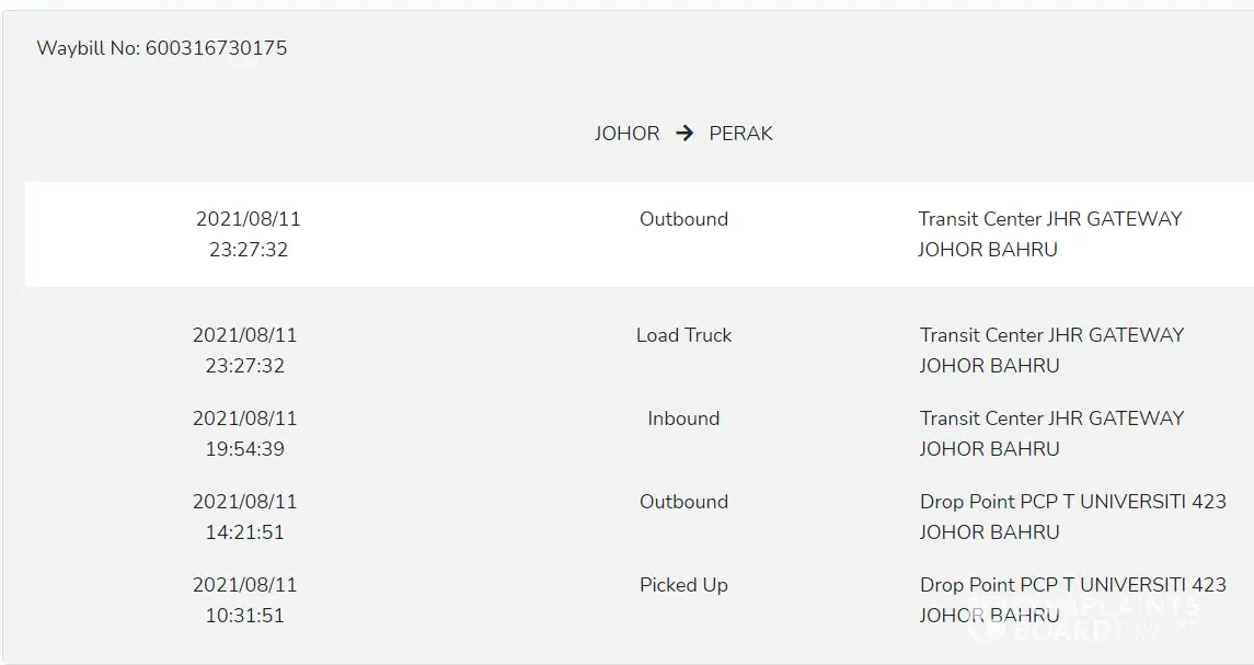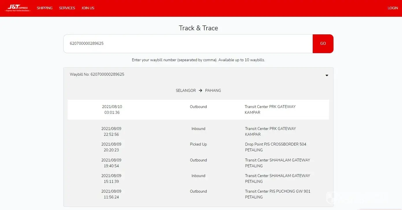 Barang saya da tersadai lama kt j&t transit center prk gateway-kampar
