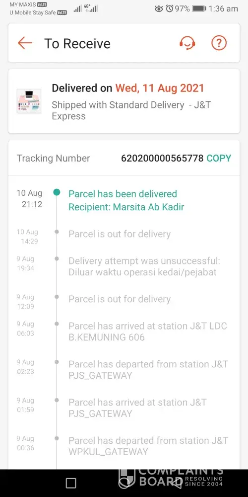 My parcel stucked in gateway kemuning centre and delay for a a day. I was so surprised today on 11 August 21 @ 1.24am I received the notification that my parcel has been delivered but I did not receive anything. Please solve this matter for me. Tq. The tracking number is [protected].