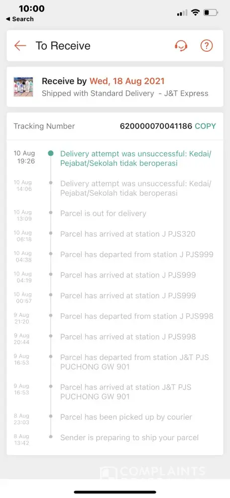 Mohon semak tracking no [protected].Status 'delivered' tetapi masih belum terima parcel tersebut.Proof of delivery pun bukan parcel dan lokasi yang sepatutnya.Saya hantar parcel menggunakan kotak bukan plastik.Adakah pihak j&t tersalah hantar?Mohon semak dimanakah parcel saya sebenarnya dan hubungi saya segera.Berat kotak juga 5kg+