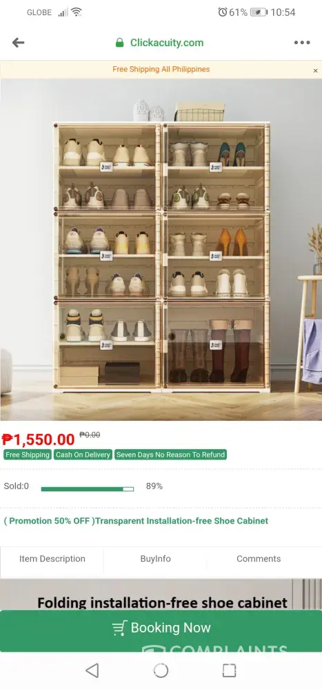 Wrong item delivered. Ordered 6 layer shoes cabinet but received 4 pieces shoe boxes