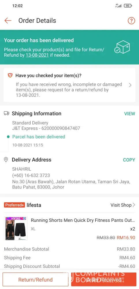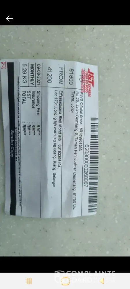 I would like to complain about item that your crew delivered. It seems my item had not reached to my place address No.30 (Aras Bawah), Jalan Rotan Utama, Taman Sri Jaya, Batu Pahat, 83000, Johor.