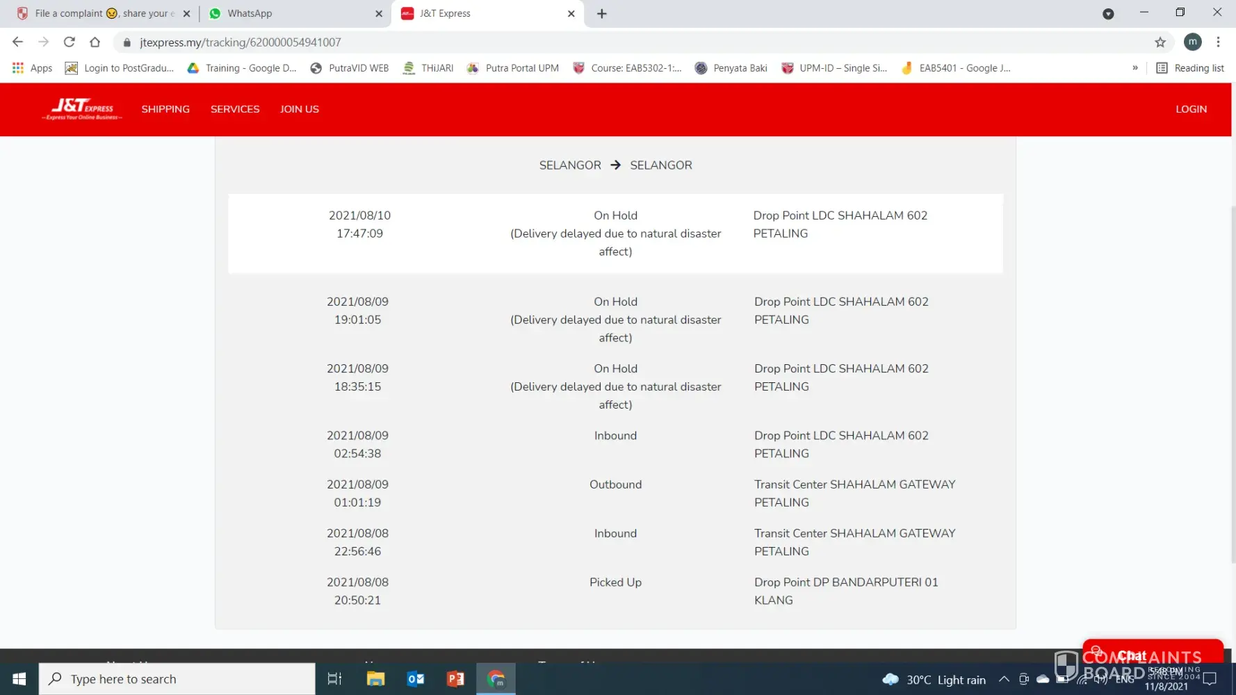 It arrive at Klang Jaya 603 on 28.7.2021. Till today still stuck.