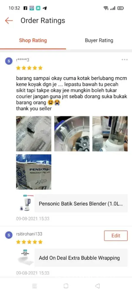 Semalam barang I sampai dalam kotak lunyai tau kotaknya? I faham barang banyak and korang kena sorting loading brg kena cepat. But its clearly ada tapping fragile tapeeeeee. So kenapa lunyai kotak di buatnya? Takkan seller hantar kotak dah memang lunyai? Nasib brg kat dalam wrapping bubble wrap kalau tak hancur barang. My mom punya barang fragile also and barang tu clearly nampak what inside sbb box tu wrap dengan bubble wrap sahaja and why nak kena koyakkan bubble wrap tu? Rosakkan barang orang ke? And ada crack bottom of my mom punya brang. Nasib dpt my mom yg okay so then dia accept. Kesian la seller and customer yang nak received. Kalau fragile handle sehabis baik. Bukan we not understand you guys punya situation but agak agak laaaa all loss or rugi seller tanggung. Always ada problem. Just a few staff je okay time handling barang. Most of ikut suka hati je. Belum lagi yang hantar barang ayat macam takde adab 😠aduh apa la. Push push org laaa. One or two of them yang mcm tu. Yang lain so far acceptable
