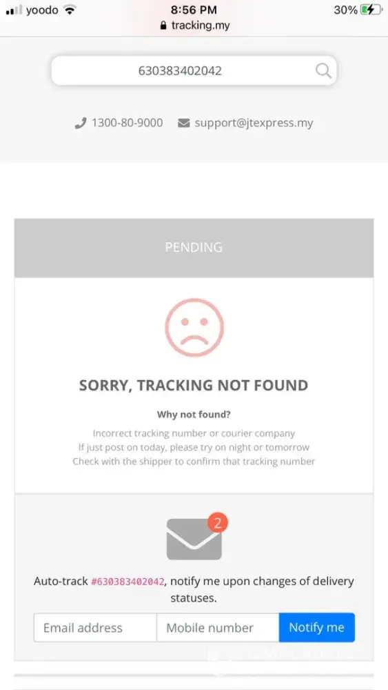My tracking number [protected] I already check is received on seri kembangan 605 J&T here, I drive car to this stock ask, you staff tell me, now we all so bz, no one free help you check.. so bad service, I'm customer, I still drive car to you stock ask, you staff like this reply me …