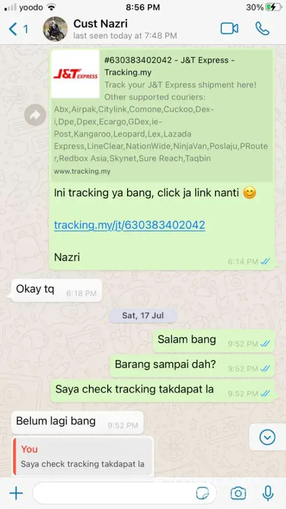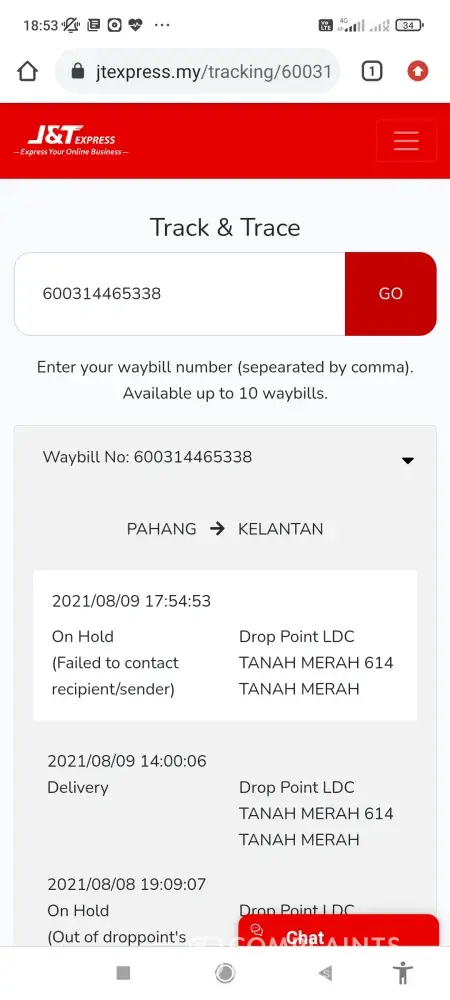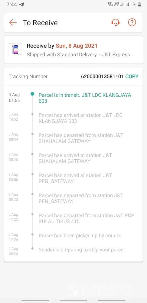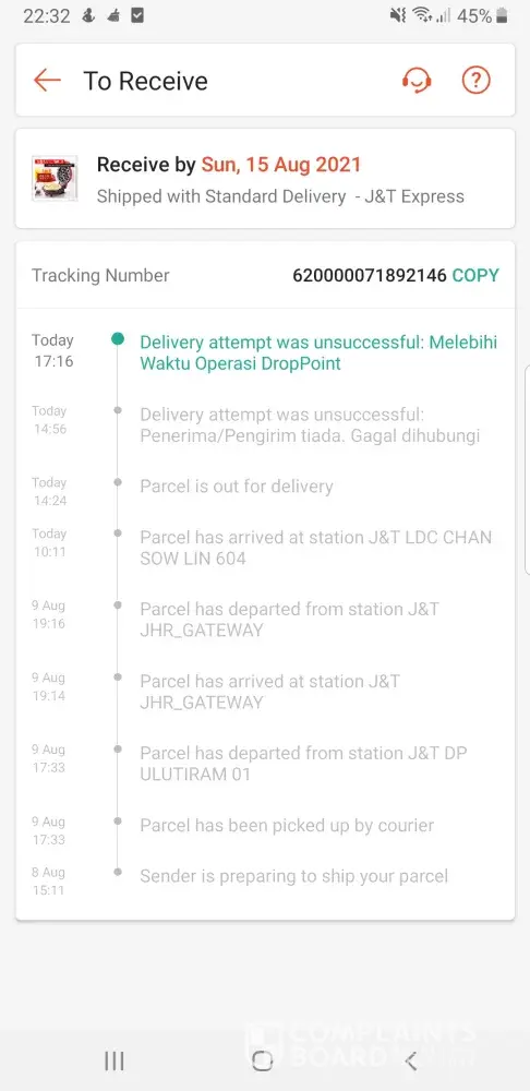 J&T Express Penghantaran parcel lambat dan hampir melebihi 2 minggu