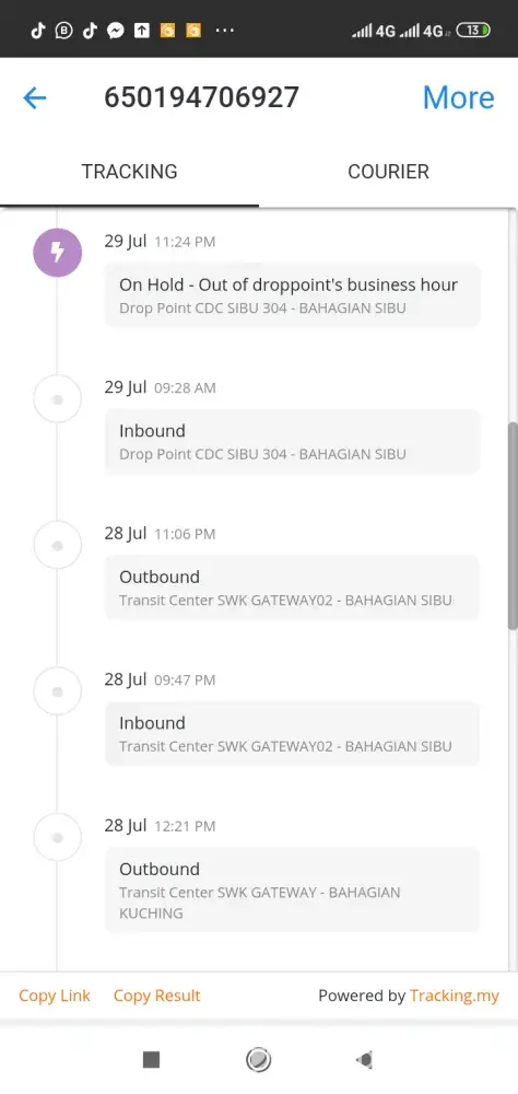 Merujuk perkara di atas Parcel saya Janefar Simbah anak Boniface dengan tracking nombor [protected] telah diperam selama 2 minggu oleh Pihak J&T Sibu. Status tidak berubah langsung dan hanya menunjukkan dalam " Keadaan khas sahaja". Saya telah melakukan self collect pada 1hb Ogos. Tetapi pihak berkenaan memaklumkan bahawa parcel saya belum sampai ditempat berkenaan. Mereka juga menyuruh saya pulang dan akan memaklumkan kepada saya jika sudah ada. Namun seminggu berlalu parcel saya masih tiada khabar berita. Mohon pihak encik bertanggungjawab atas apa yang berlaku sebab saya membayar sebanyak Rm53 untuk cas penghantaran tersebut. Selain itu di dalam kotak itu turut berisi barang2 berharga dimana bukan kepunyaaan saya seorang. Mohon pihak tuan dapat membantu. Saya akan membuat laporan SKMM sekiranya barang saya masih belum sampai minggu ini. Sebab saya telah menunggu selama 2 minggu untuk pihak encik membuat penghantaran🙏👍🏽