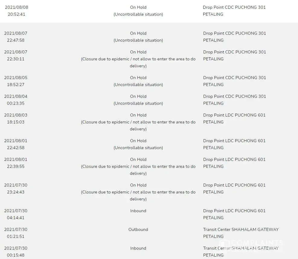 parcel stuck too Long at the warehouse LDC klangjaya 603