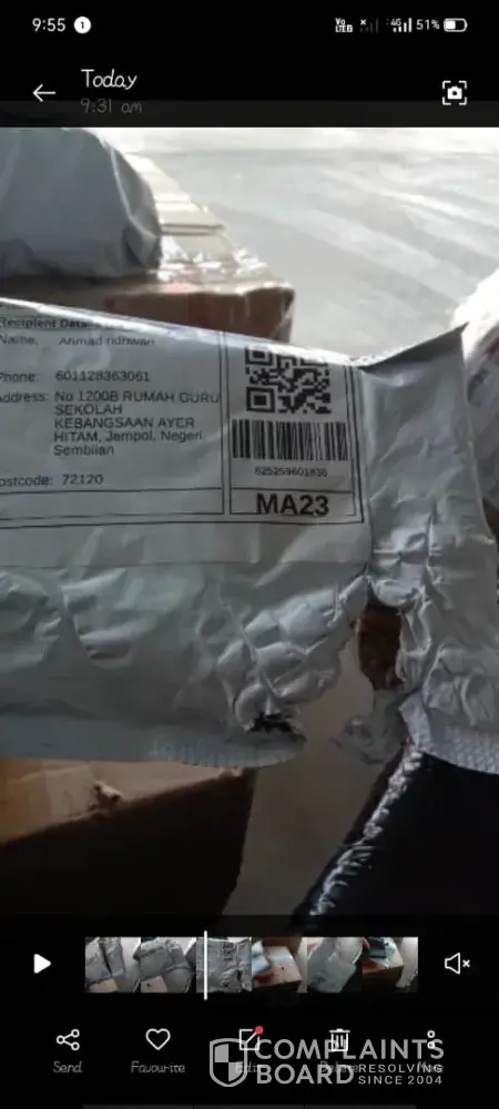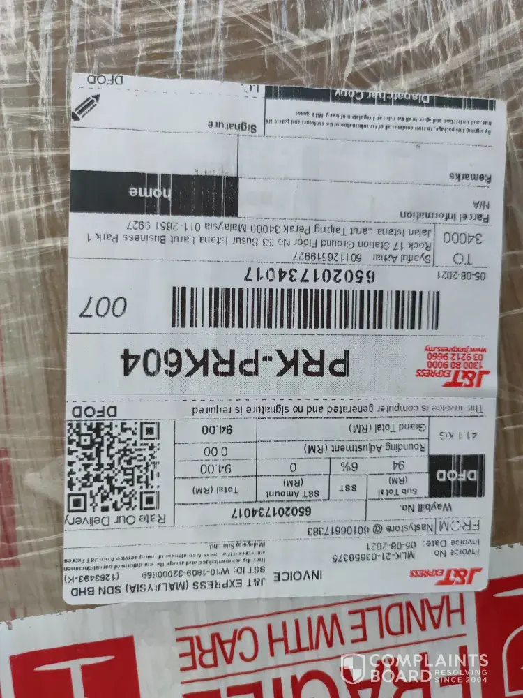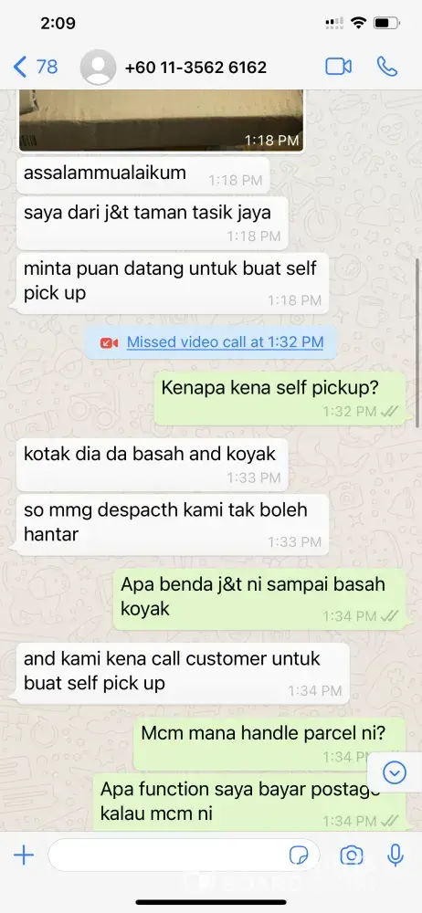 Saya mohd aszeri bin mohamad seller dr jb.. Harini 06/08.2021 jam 4ptg telah menerima aduan dr customer sy di pahang atas nama noraini bte abdul rahman [protected] bahawa parcel yg hendak diterima dr curier telah rosak/pecah. Customer sy membuat keputusan utk tidak menerima parcel tersebut & dibawa semula oleh pihak curier jnt..