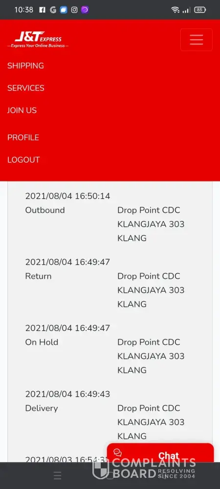 On 5/8, the receiver call jnt staff again ( maybe here, I'm not sure drop point LDC CHAN SOW LIN 604) she said the parcel have to return to me back and unfortunately the receiver contact number missed one num. I think in proper way, jnt staff should inform the receiver on the 1st time she call. and the receiver said, the jnt staff ask me to launch the report. so this is i'm doing now.