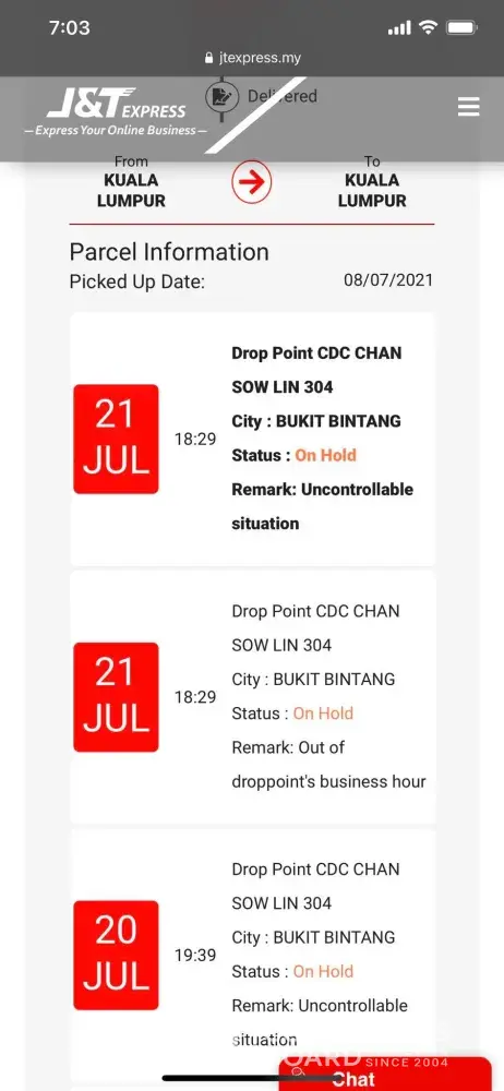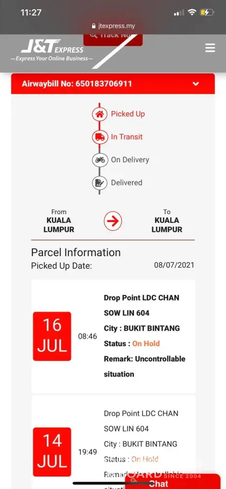 Again i check the tracking on 16/7, the parcel still at drop point LDC CHAN SOW LIN 604.