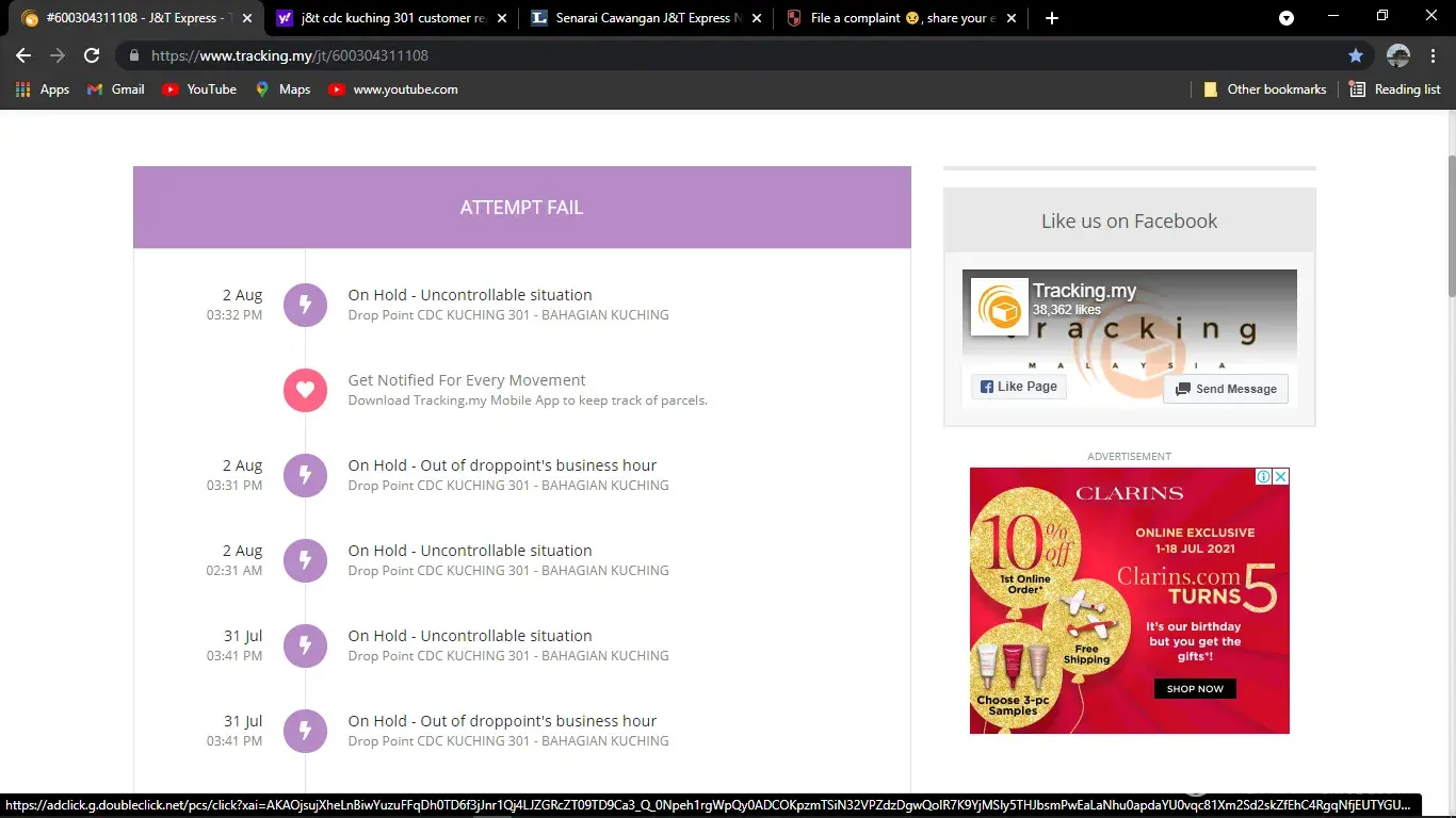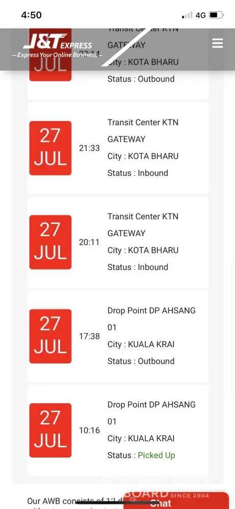 J&T Klang Jaya - Despatch collect the items at J&T Klang Jaya but keep the item with them for 4 days...What happen if the items is food? Too bad.