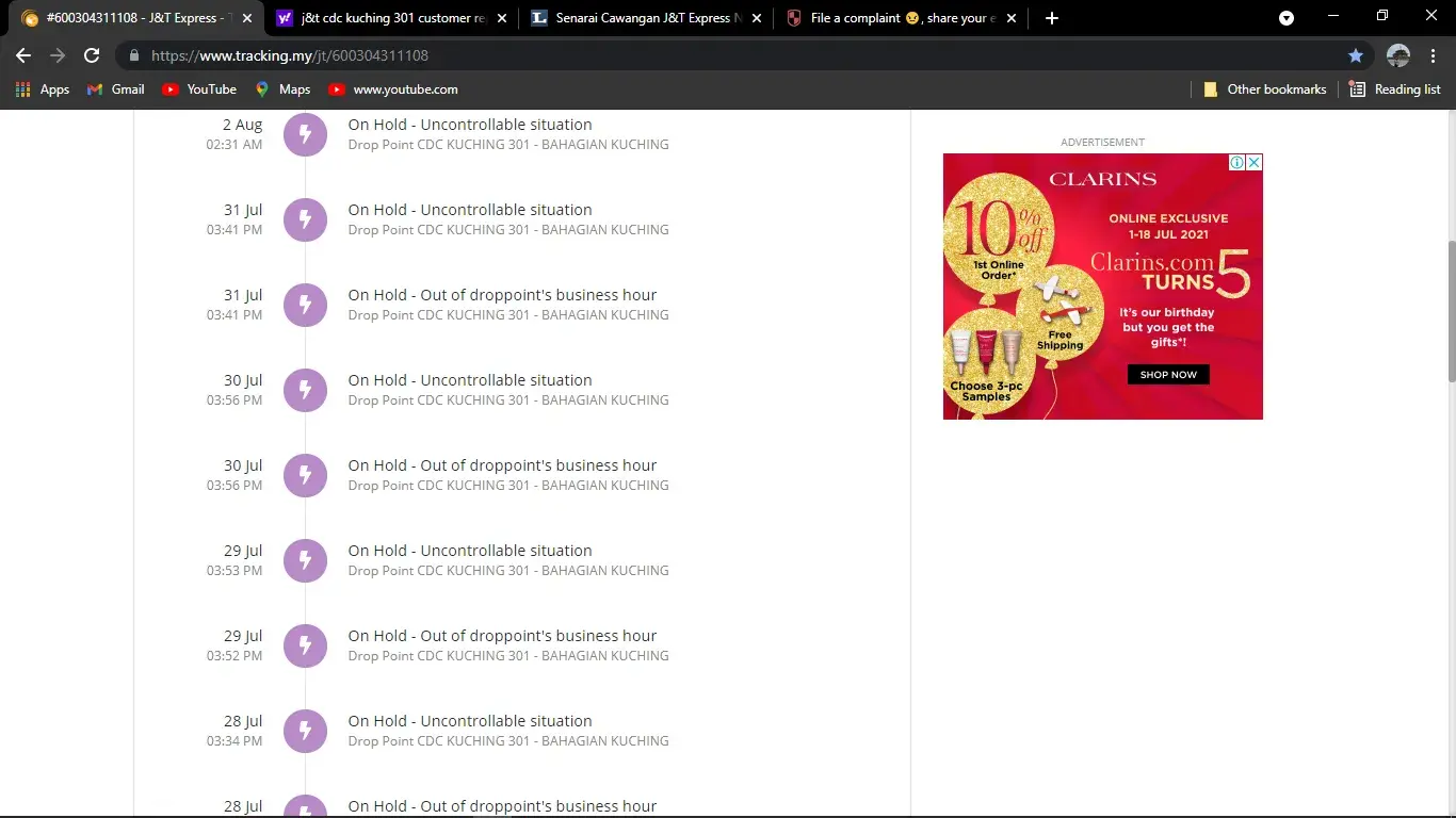 Hi, J&T saya nak complain mengenai branch J&T LDC KLANGJAYA 603 - KLANG. Kenapa mereka suka hold barang terlalu lama di sana. Barang saya dah masuk 5 hari di hold dekat sana. Please pastikan barang sampai tepat waktu.