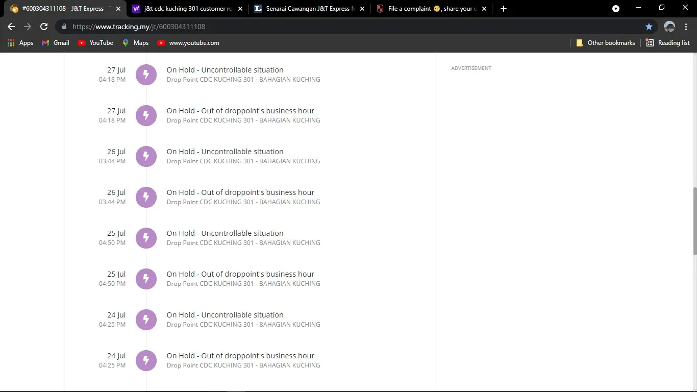 I am complaining about j&t service