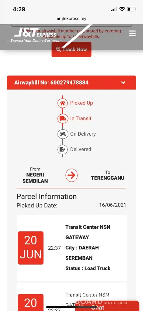 Parcel hilang .parcel lost at transit center pjs klang city. parcel lost on 18 julai 2021 at jnt klang hub