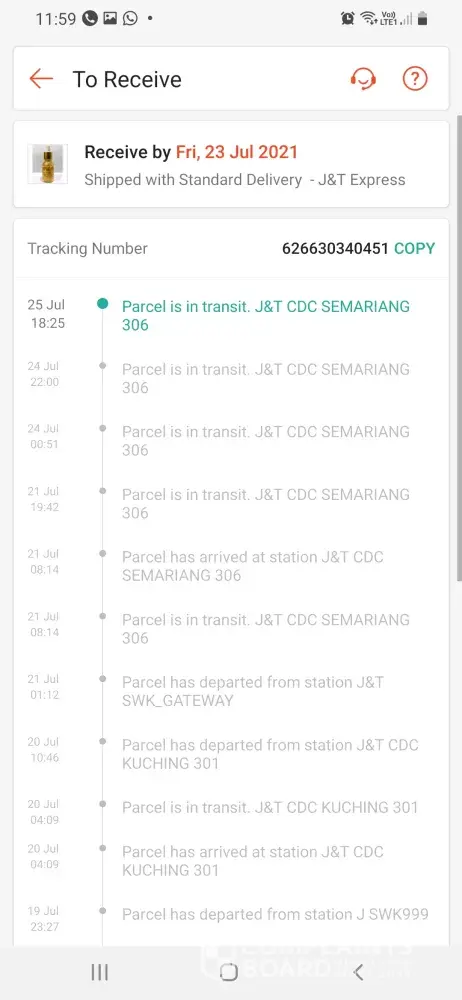 [protected] My parcel still in transit at J&T Samariang CDC 306