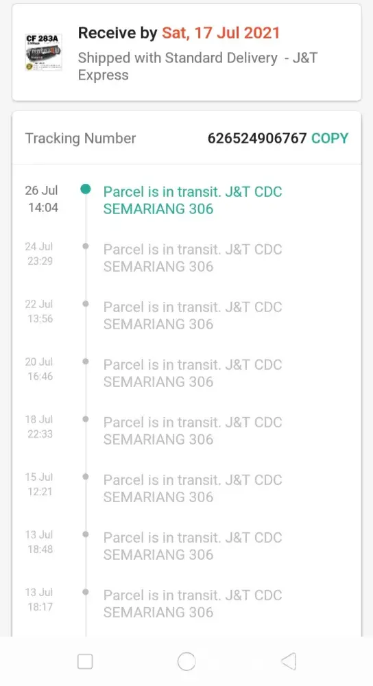 I need my item deliver as soon as possible especially during MCO. The shipping fee already paid. The item early arrived at J & T Samariang CDC 306 since 09 July 2021. Untill now 26.07.2021 still no progress for delivery.