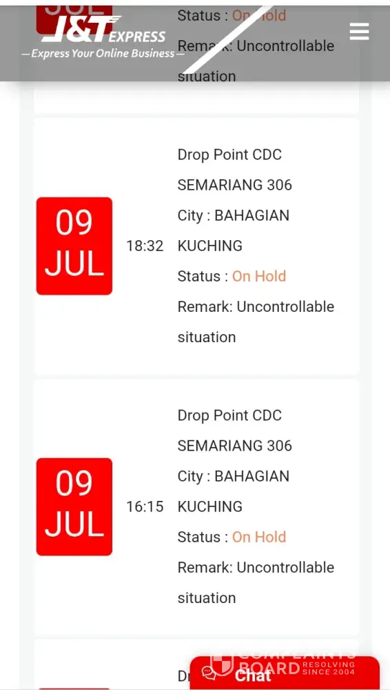 My parcel has been on hold due to natural disaster, despite our weather here is freaking good and never rain for more than a month. I tried to make phone calls to J&T customer service and waited for long time, then i been told that my parcel is been arranged for delivery, but 3 days later the status still remain the same. I am really frustrated on the services that provided by J&T, as they are not providing us a good services even a simple announcement or what. in their facebook, everyone have the same issues. J&T Express please give us an explanation!