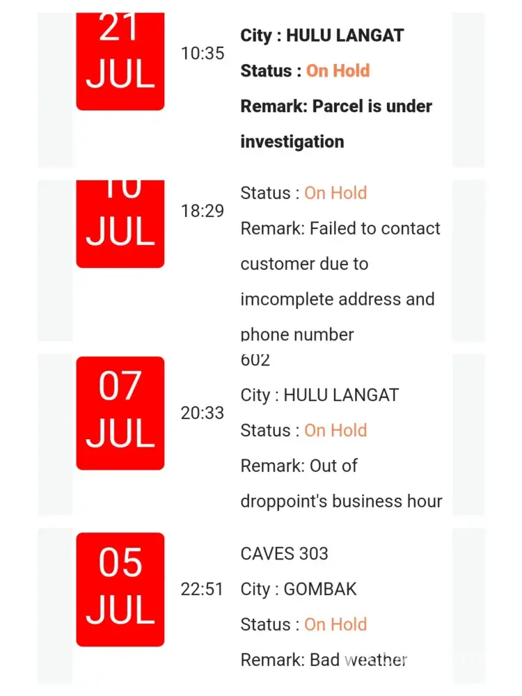 why my parcel hold untill 5 day on Cdc 301 bandar teknologi