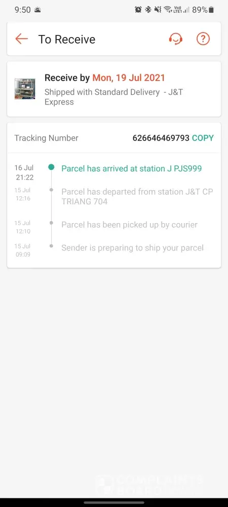 Product not received since 13/7/2021 ( today is 23/7/2021)
