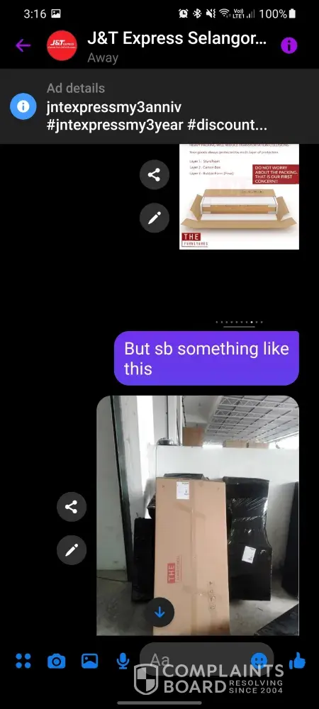 Saya tinggal di Vista Seri Putra, Bandar Seri Putra, Kajang, Selangor. Sudah 3-4 kali jadi begini, barang-barang semua hanya dihantar dan diletakkan di letter box rumah saya di lobby apartment, bukannya dihantar sampai depan pintu rumah. What if barang saya hilang semasa abang delivery hanya suka hati letak barang saya dalam letter box yang tak berkunci tu? Nak tanggung kerugian ke? Saya bayar delivery caj bukan untuk saya kena turun sampai ke lobby apartment untuk ambil barang saya. Saya bayar delivery charge yang sampai RM4.60 tu untuk abang delivery hantar barang sampai depan pintu rumah dengan selamat. And bukan hanya seorang yang buat perangai begini, 2-3 orang delivery guy yang buat macam ni. 😡😠😡ðŸ˜
